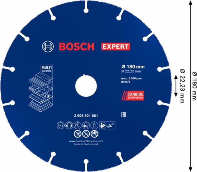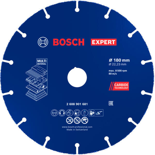 BOSCH EXPERT keményfém többkerekű vágótárcsa 180 mm, 22, 23 mm - 2608901681 - Vágótárcsa (2608901681)