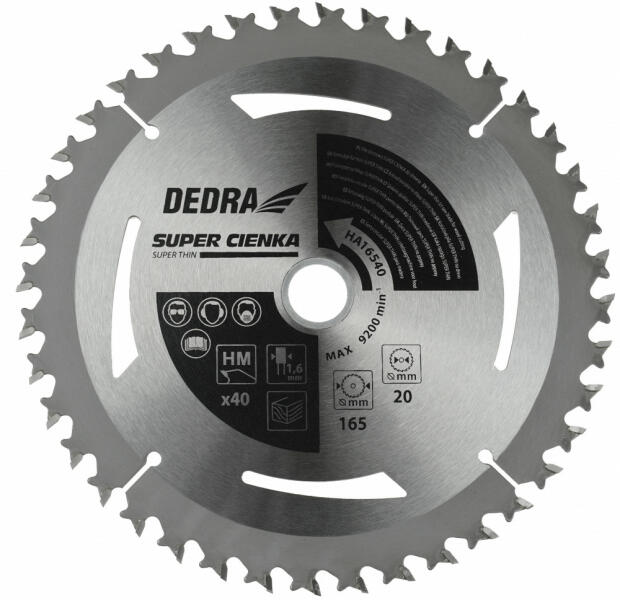 Dedra fűrésztárcsa fához SUPERTHIN 40z 165x16x1, 1x1, 6mm (DED-HA16540E)