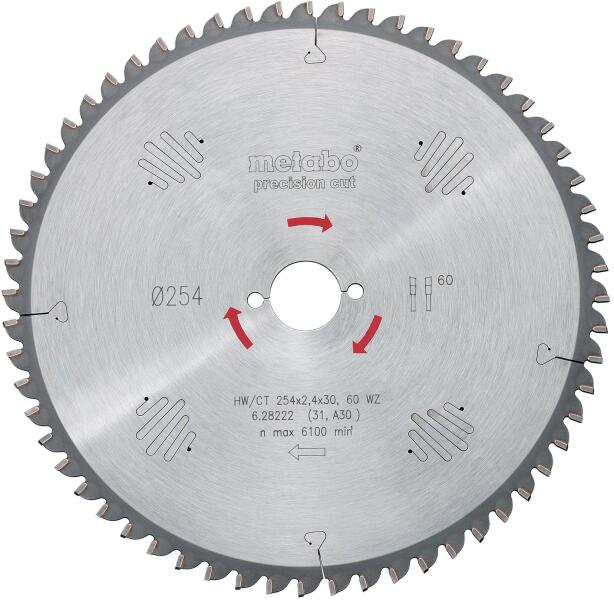 Metabo Precision cut wood körfűrészlap 254 x 30 mm | fogszám: 60 db | vágásszélesség: 2, 4 mm (628222000)